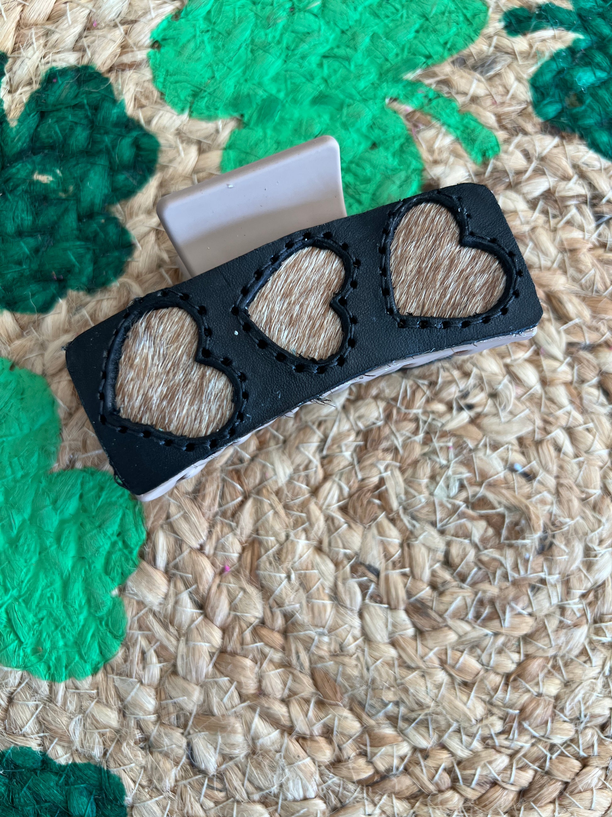 Tooled with cowhide hair clip 3.5”