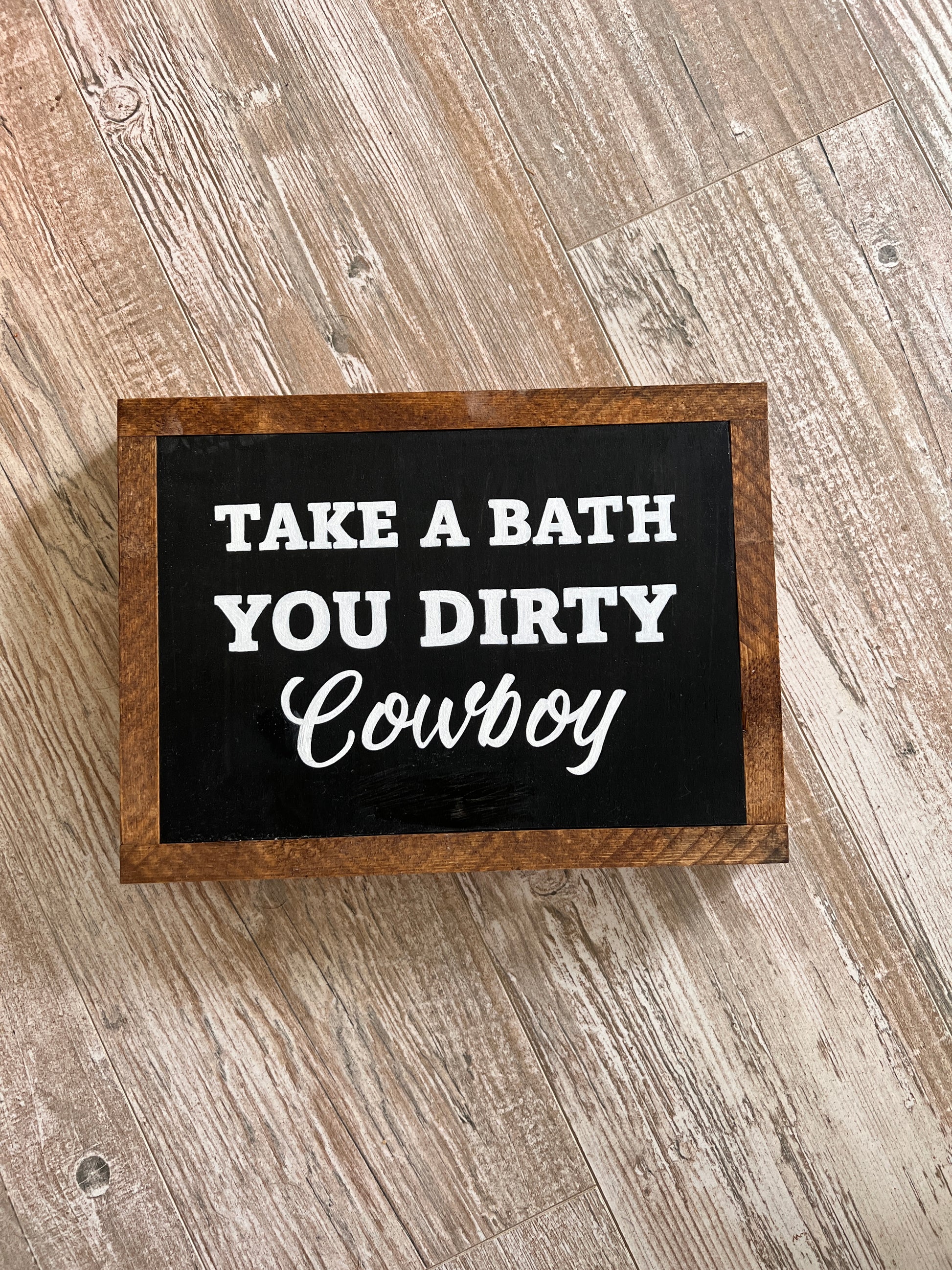 Take a bath you dirty cowboy!! Sign is hand painted (no stickers) 9x12.5”